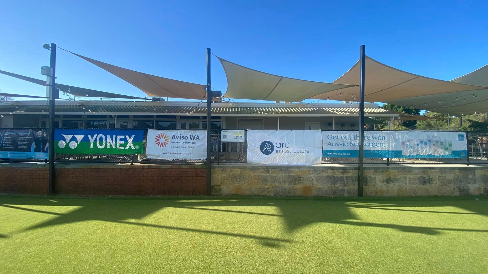 Sponsors' signage is now up on the tournament courts, including Alexander Park Tennis Club's magnificent showcourts.