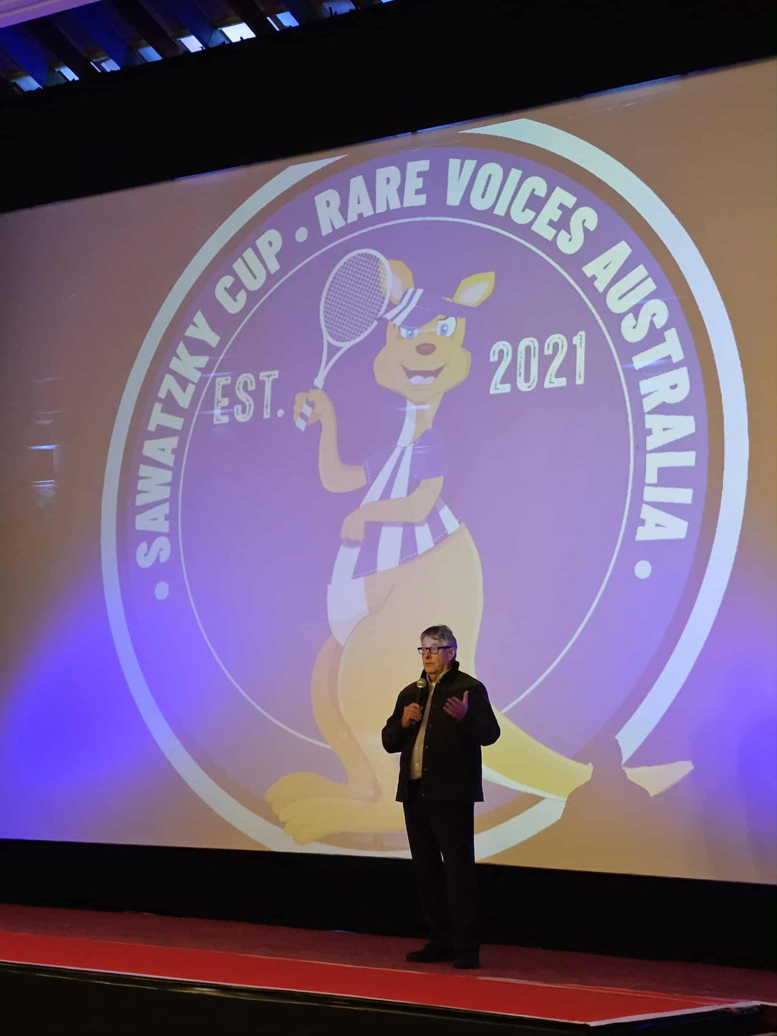 Getting the Rare Voices Australia and Sawatzky Cup logos on the big screen was very cool indeed and it was a privilege to explain to patrons why the Sawatzky Cup got off the ground and why we direct funds raised to Rare Voices Australia.