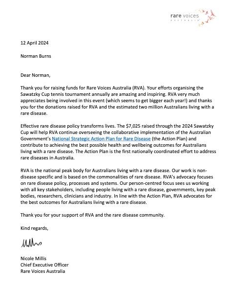 Thanks to Sarah and the team at Rare Voices Australia for getting our official 2026 Sawatzky Cup Grasscourt Classic/Rare Voices Australia fundraising page LIVE.