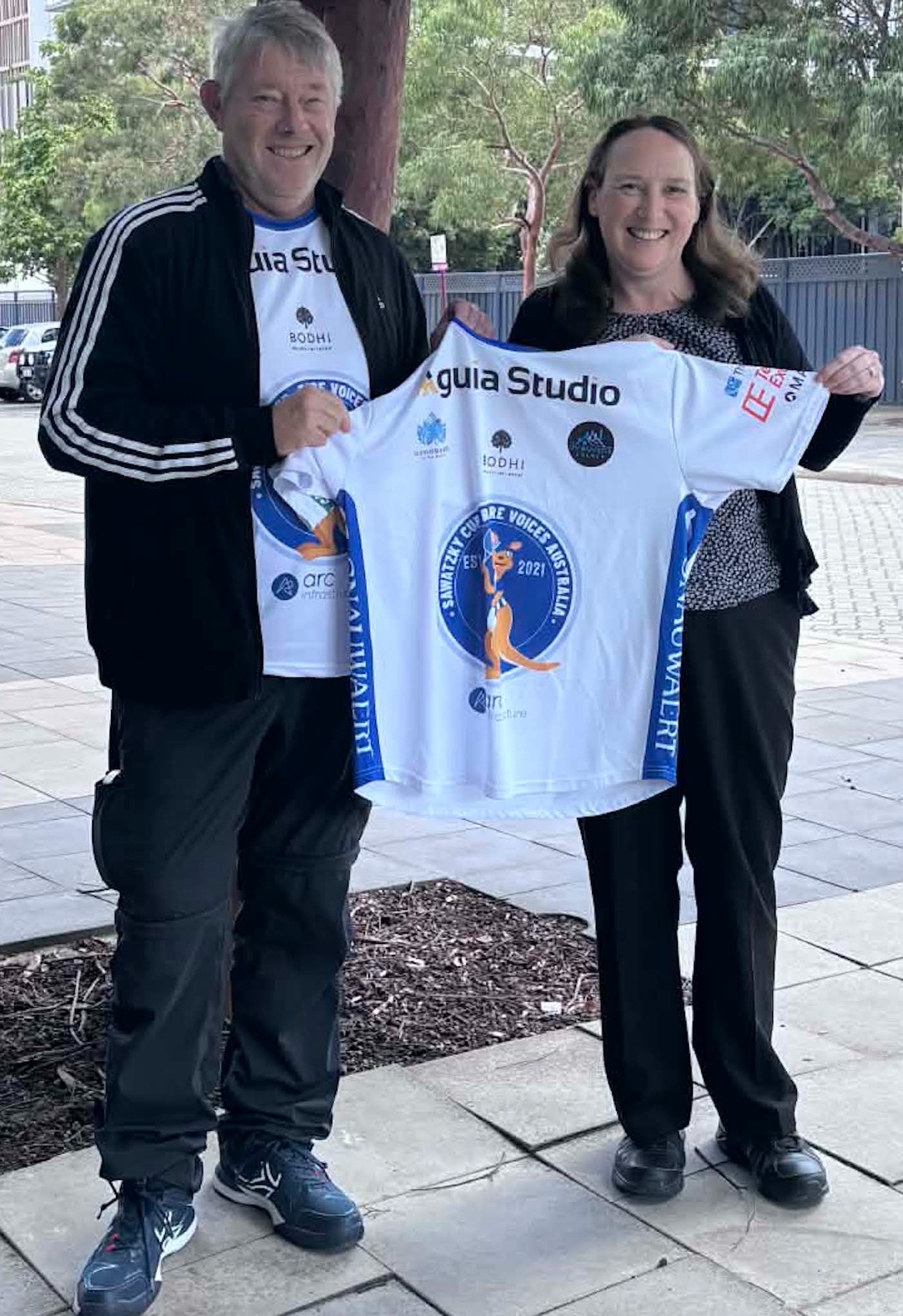 Nice to catch up with Rare Voices Australia CEO Nicole Millis, over from sunny Melbourne, and be able to present in person some of the Sawatzky Cup 2026 tournament shirts.